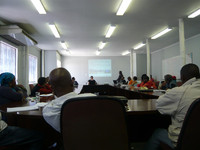 Endlich geschafft! Diesen Ausruf hoffe ich nach dem Ende des Aufenthaltes der deutschen Delegation endlich aus mir heraus rufen zu können. Doch in der guten letzten Woche war es nun noch einmal ein riesen batzen an Arbeit, der noch zu bewältigen war. Am 4. November war ein monatliches sogenanntes “Reference Group Meeting”. Circa 90 Leute sitzen dann in einem großen Besprechungsraum in einem Office in Khayelitsha und die Vertreter der von der VPUU geführten Projekte geben ihren monatlichen Fortschrittsbericht und neueste News aus der Community ab. Ein großes Fußballturnier, zu dem eine deutsche Delegation des Projektes “Auf Ballhoehe” anreisen wird und dessen Volunteer dieses organisiert hat, gehört ganz sicher zu Projekten, die auf diesem Meeting vorgestellt werden sollen. Diese ehrenvolle Aufgabe besaß ich an diesem Tag. Zum Präsentieren gehört natürlich eine professionelle Power Point Präsentation, die aber die Zeit von 4-5 Minuten nicht überschreiten sollte. Professionell war die Präsentation soweit auch, wenn man die Probleme mit den nicht aufeinander abgestimmten Effekten und die dadurch entstandenen Folgen mal leicht ausgrenzt. Nachdem ich von Thembeka kurz vorgestellt wurde und ich versucht habe, meine Xhosa Kuenste bei meiner Begrüßung zu präsentieren, ging es dann los. Am Ende lief es dann doch noch ganz rund und ich habe die vom Meetingsleiter vorgeschriebene Präsentationszeit “zum Glück” nicht überschritten. Meine 15 Plakate für das Turnier und die Handouts über das Programm des Aufenthalts wurden mir danach förmlich aus den Händen gerissen und ich konnte mich vor Anfragen über die Teilnahme am Turnier nicht mehr retten.